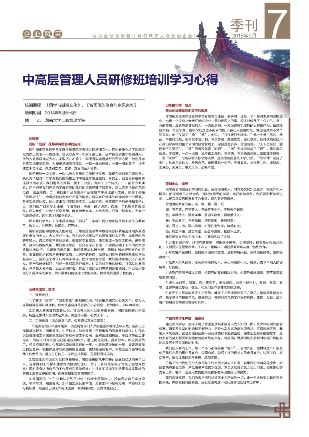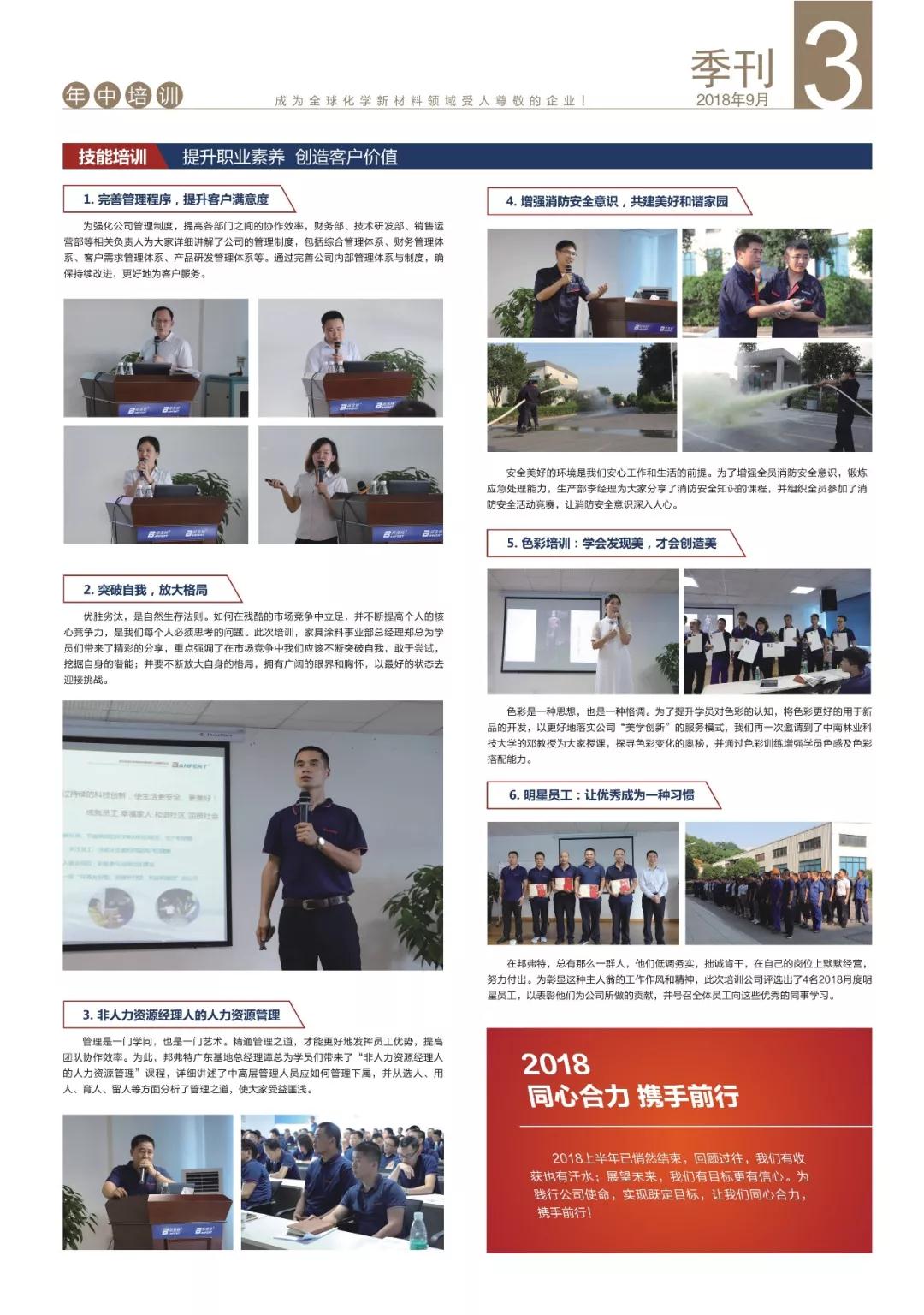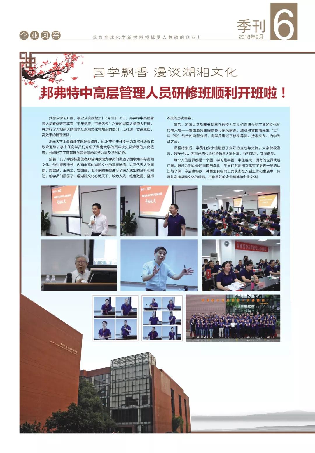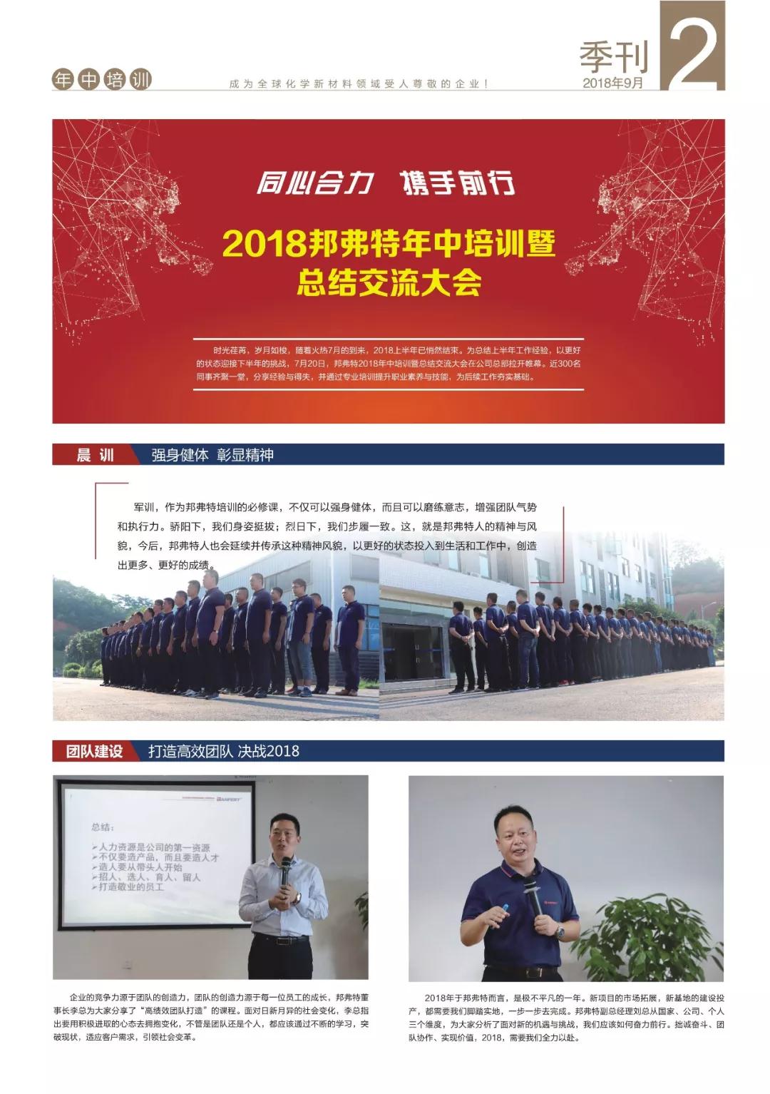 新品研發(fā)率先通過加州65號提案,年中培訓打造高效團隊,地板行業(yè)重點企業(yè)座談會與客戶協(xié)同創(chuàng)新,環(huán)保涂裝培訓班格物致知,邦弗特獎學金走進高等學府,健康百寶箱攜愛出發(fā)……