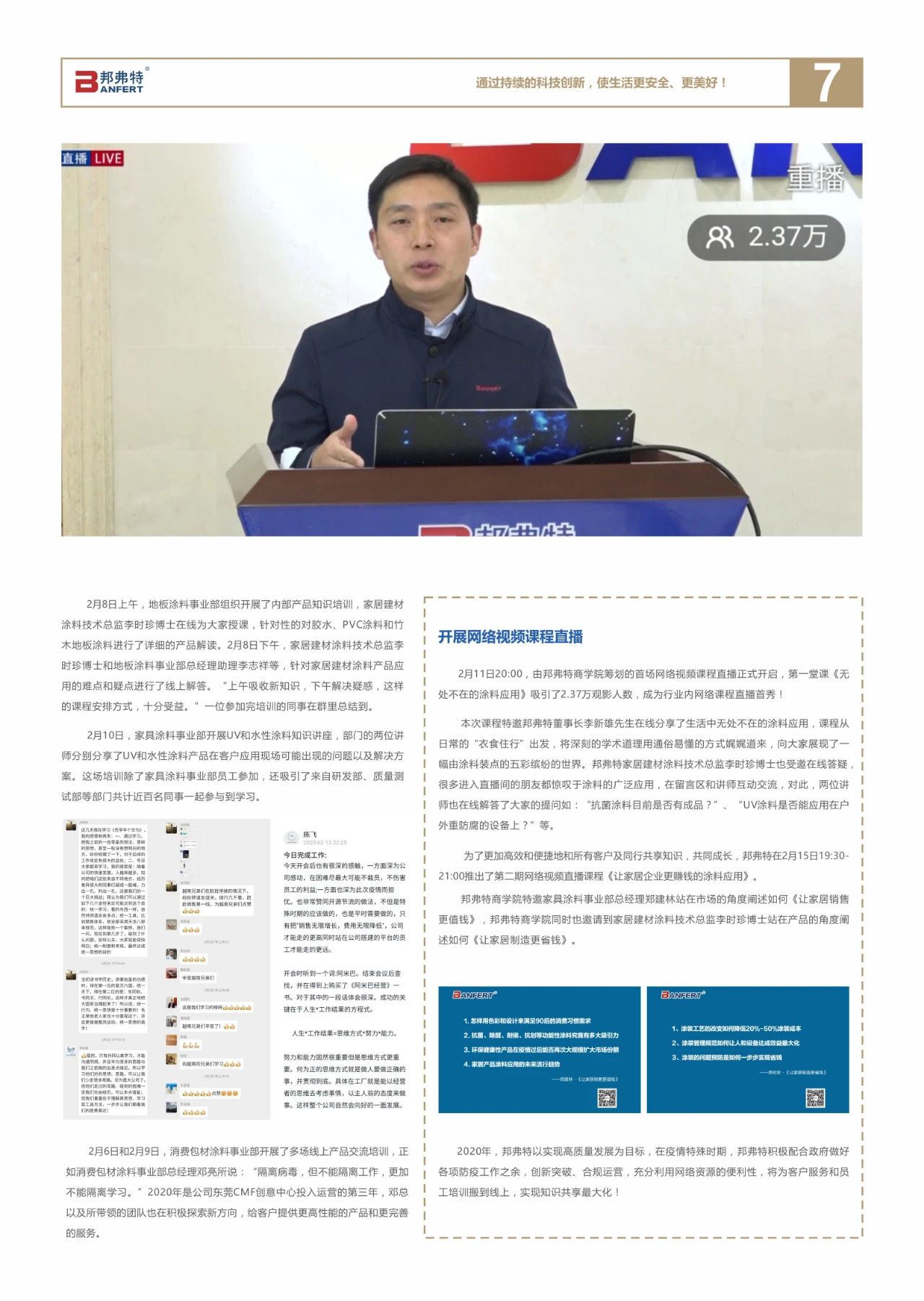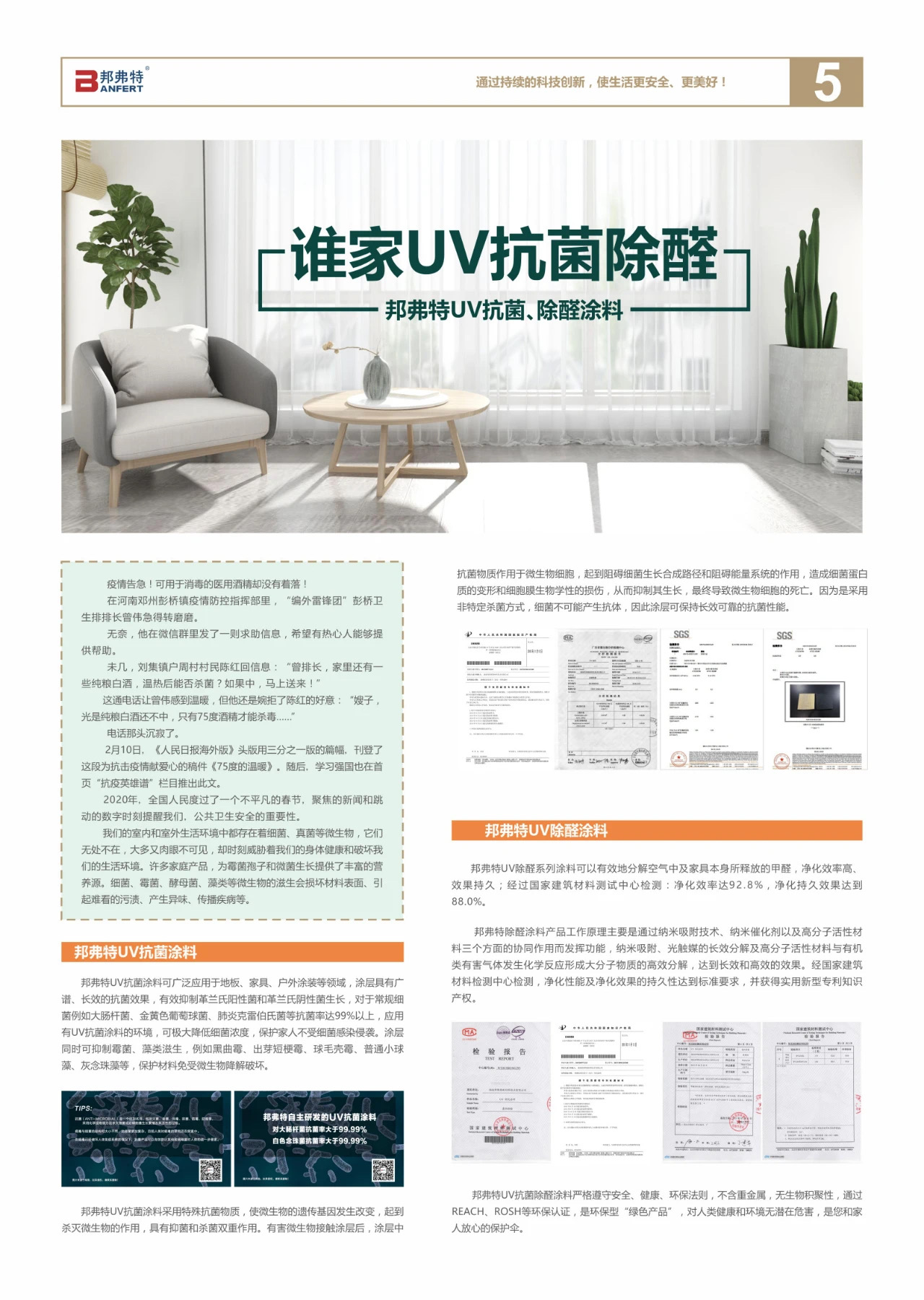 在2020年這個不平凡的春天,邦弗特再啟新征程,開展行業(yè)直播首秀,研發(fā)升級UV抗菌除醛涂料,超億元戰(zhàn)投資本賦能邦弗特發(fā)展,用愛心和行動致敬逆行者。