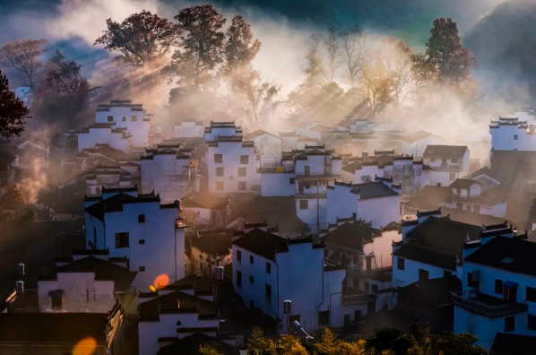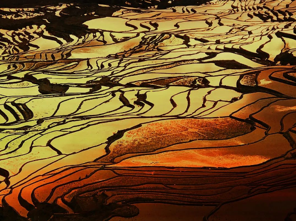 充滿生機的晨曦色被輕霧繚繞,流霧攜著曦色追隨陽光貼著梯田水面緩行,在村巷屋舍間游走,慢慢兒彌漫了山谷溝壑,不經意間浸潤了每個早出人的身心,讓世間的所有,在晨曦赬霞的裹挾下顯得如此明媚溫暖。