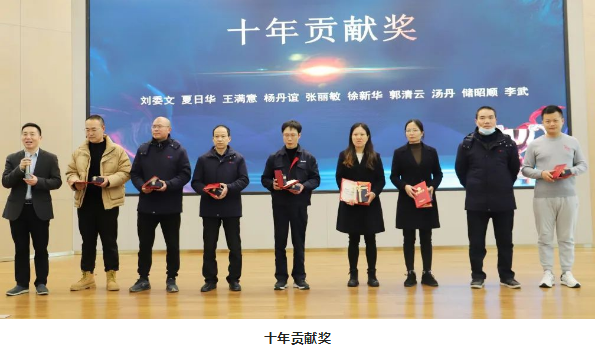 為表彰業績突出團體和個人,弘揚榜樣精神,激勵全體員工積極投身公司高質量發展,會議舉行了2022年度評優表彰儀式。本次表彰頒發了“十年貢獻獎”、“優秀員工”、“優秀干部”、“優秀團隊”、“研發成果獎”等在內的十余類獎項。