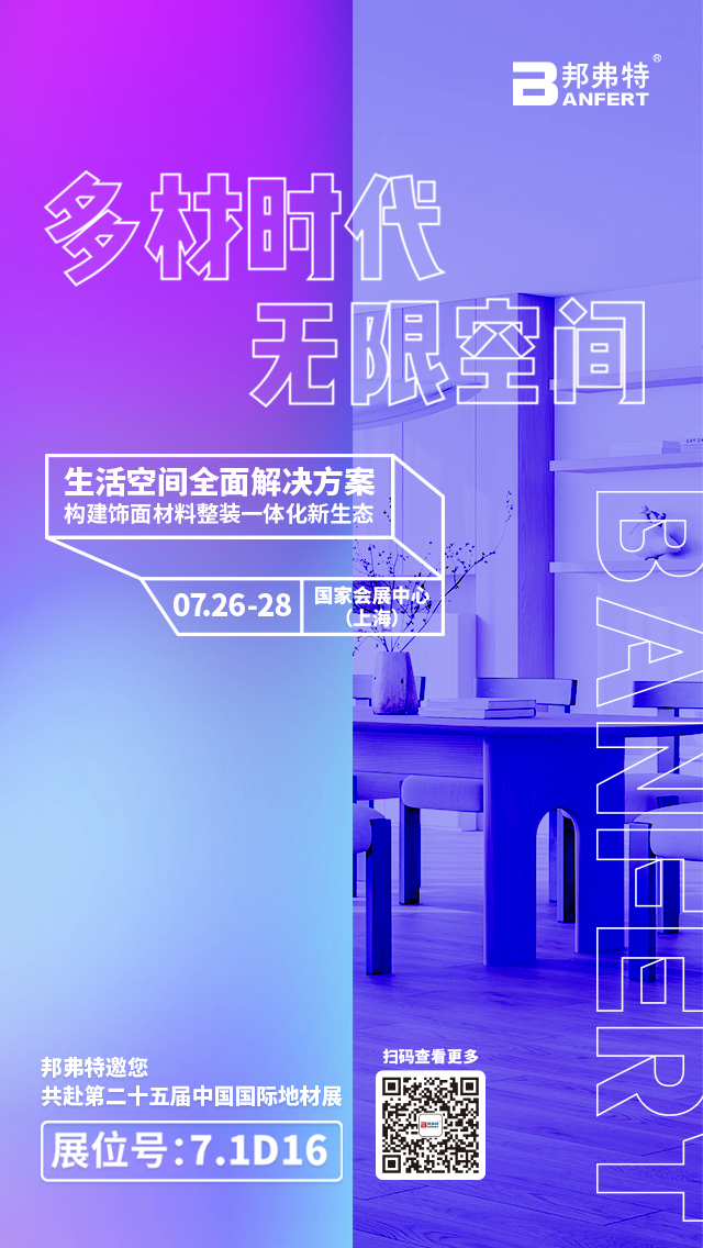 2023中國國際地面材料及鋪裝技術(shù)展覽會(huì)X邦弗特“多材時(shí)代·無限空間”展廳將于7.26-28盛大啟幕,誠邀您前來觀展。