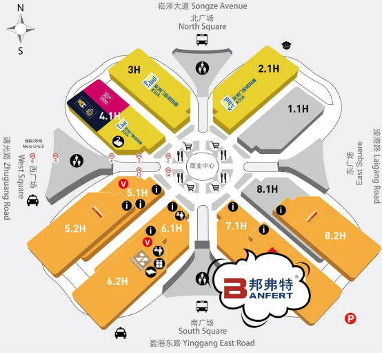2023地材展有5.1、5.2、6.1、6.2、7.1、7.2、8.1、8.2八大展館,邦弗特“多材時(shí)代·無限空間”展廳位于7.1D16,乘坐地鐵2號線“徐涇東”站,4、5、6號出口可直通展館。
