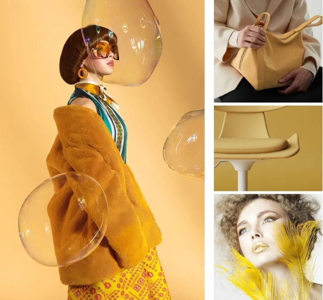 “三生色”,指由同一色相衍生出的三個及三個色以上的色彩。三生色系搭配因包含共同色相而互融互襯,盡顯細膩的層次、低調的高級?!拔嘀θ?,指從梧枝黃中衍生的三生色系,這是一組充滿希望、光明、溫暖的色系,呈現出極為治愈的視覺包裹感。