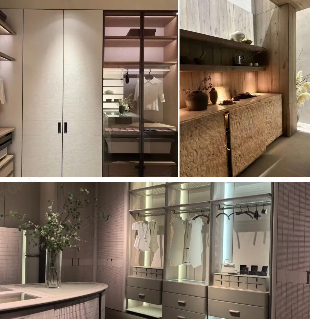 極致自然的藝術(shù)追求:首先用藝術(shù)手法,從多樣性自然中提取材料、紋理及色彩,設計再造,如胡桃、橡木、榆木等自然之材,木刺、雨絲、砂礫、肌理石等自然之紋,以及不同色度的植物綠、海天藍,豐富微妙的大地色,極度還原的原木色等自然之色,營造松弛、閑適、寧靜、溫暖的氛圍,撫慰身心成為趨勢。其次,極致自然的需求,催生更細膩、更真實自然的設計與技術(shù)表達,同步、連紋以及意式涂裝成為熱點。