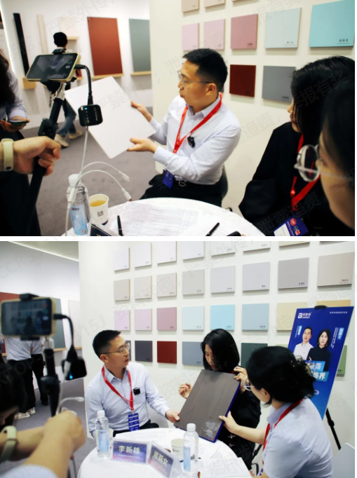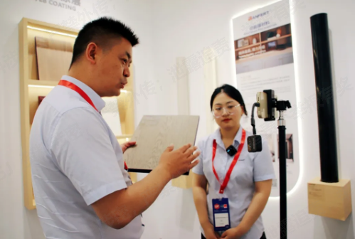 尤其是在3月28日開展線上云直播,邦弗特董事長李新雄對話中南林業科技大學教授、碩導,邦弗特新材料CMFP設計總監鄧莉文,探討板材涂飾材料學術探索與市場洞察的融合碰撞,干貨滿滿,點贊過萬,引發一場板材涂飾的熱潮,回顧直播精彩內容可點擊文章《展會進行時 | 赴一場板材涂飾材料的約會》進行查看。