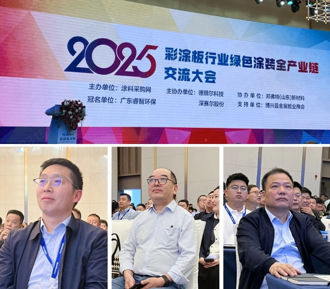 4月28日,由涂料采購網主辦、邦弗特(山東)新材料有限公司協辦的2025年彩涂板行業綠色涂裝全產業鏈交流大會在山東博興舉辦。邦弗特新材料股份有限公司董事長李新雄,公司董事孫中新,邦弗特(山東)新材料有限公司總經理郭永良,產品研發總監孫立巖等出席會議。