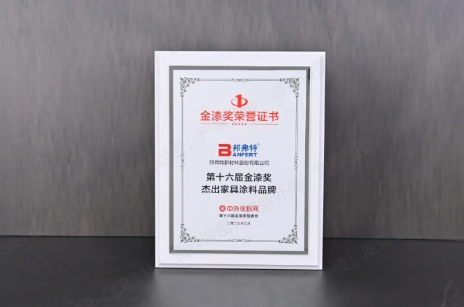 作為涂料界的“奧斯卡”,金漆獎是行業(yè)的風(fēng)向標(biāo)。在剛剛落幕的第十六屆金漆獎頒獎盛典上,邦弗特榮獲“杰出家具涂料品牌”榮譽(yù)!