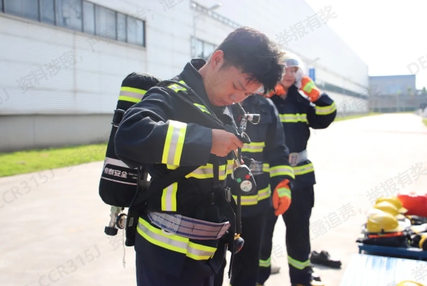賽事以團隊形式展開,來自倉儲物流一線的九名骨干員工,組成三支精干隊伍同臺競技。嚴格模擬真實火場救援環境,設置了五項核心實戰科目:快速精準穿戴個人防護裝備、熟練佩戴正壓式空氣呼吸器、高效連接消防水槍、精準實施水槍噴射滅火、以及迅速搶救現場物資。