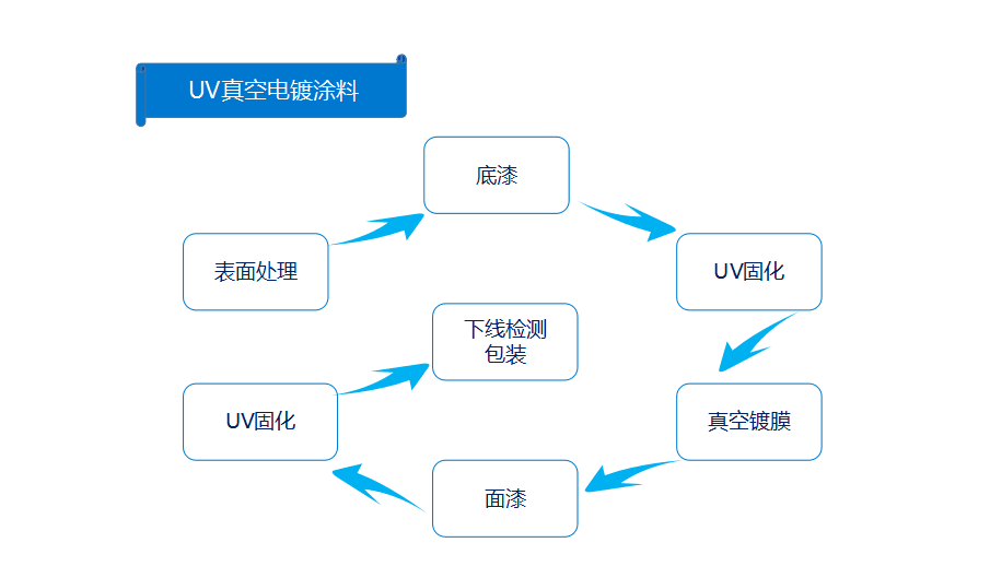 表面處理——底漆——UV固化——真空鍍膜——面漆——UV固化——下線檢測包裝